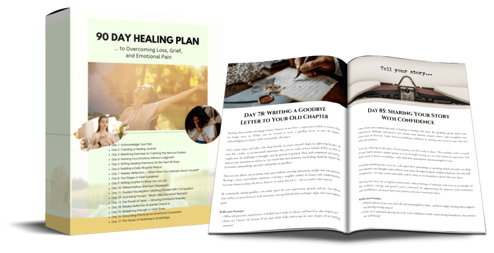 That’s why I created the 90 Day Healing Plan — a beautifully structured, deeply transformative program designed to guide anyone from emotional pain to peace, strength, and renewal in just 90 days.