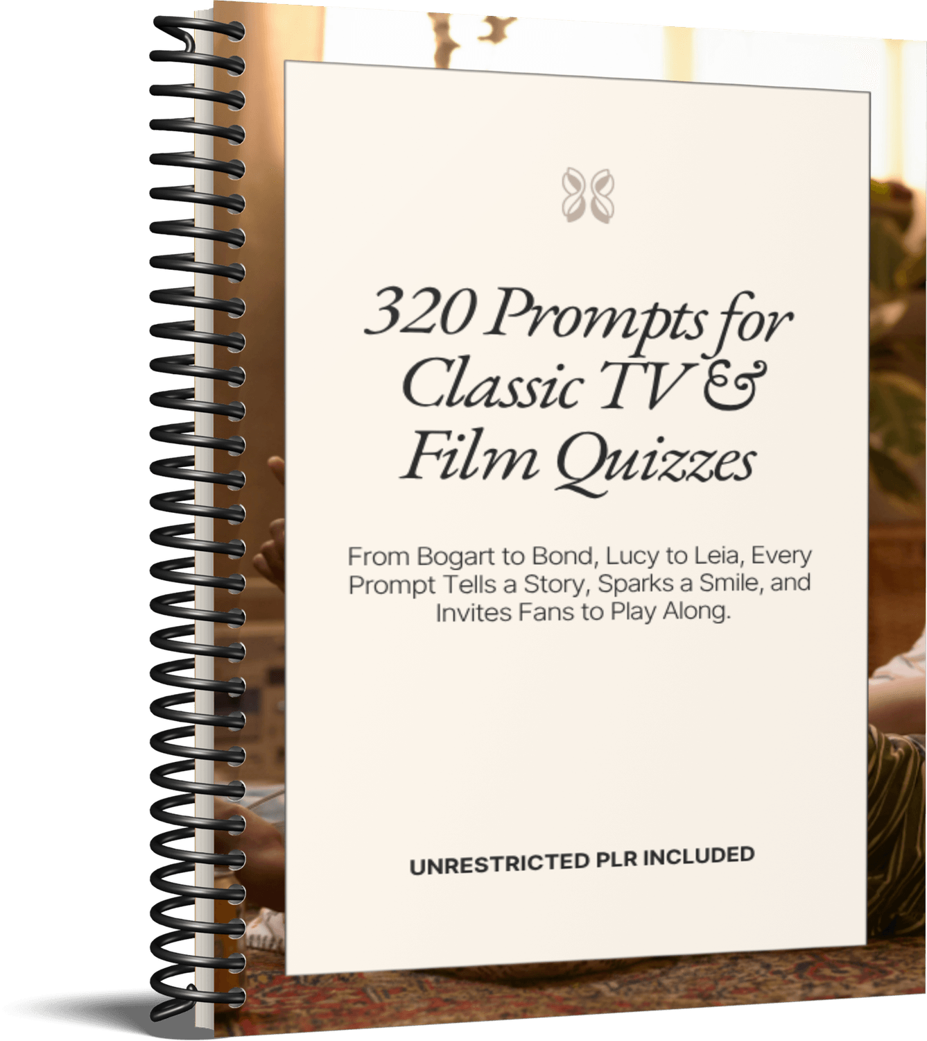 Step into the spotlight of timeless entertainment with 320 Prompts for Classic TV & Film Quizzes — that brings decades of cinematic charm straight to your audience.