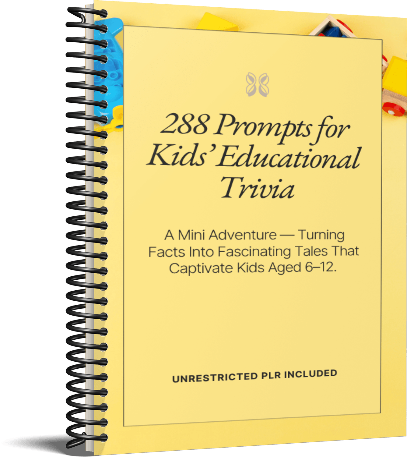 Make learning feel like play with 288 Prompts for Kids’ Educational Trivia — a beautifully written collection of story-style questions that spark imagination and teach essential knowledge across science, space, history, geography, animals, art, and more!