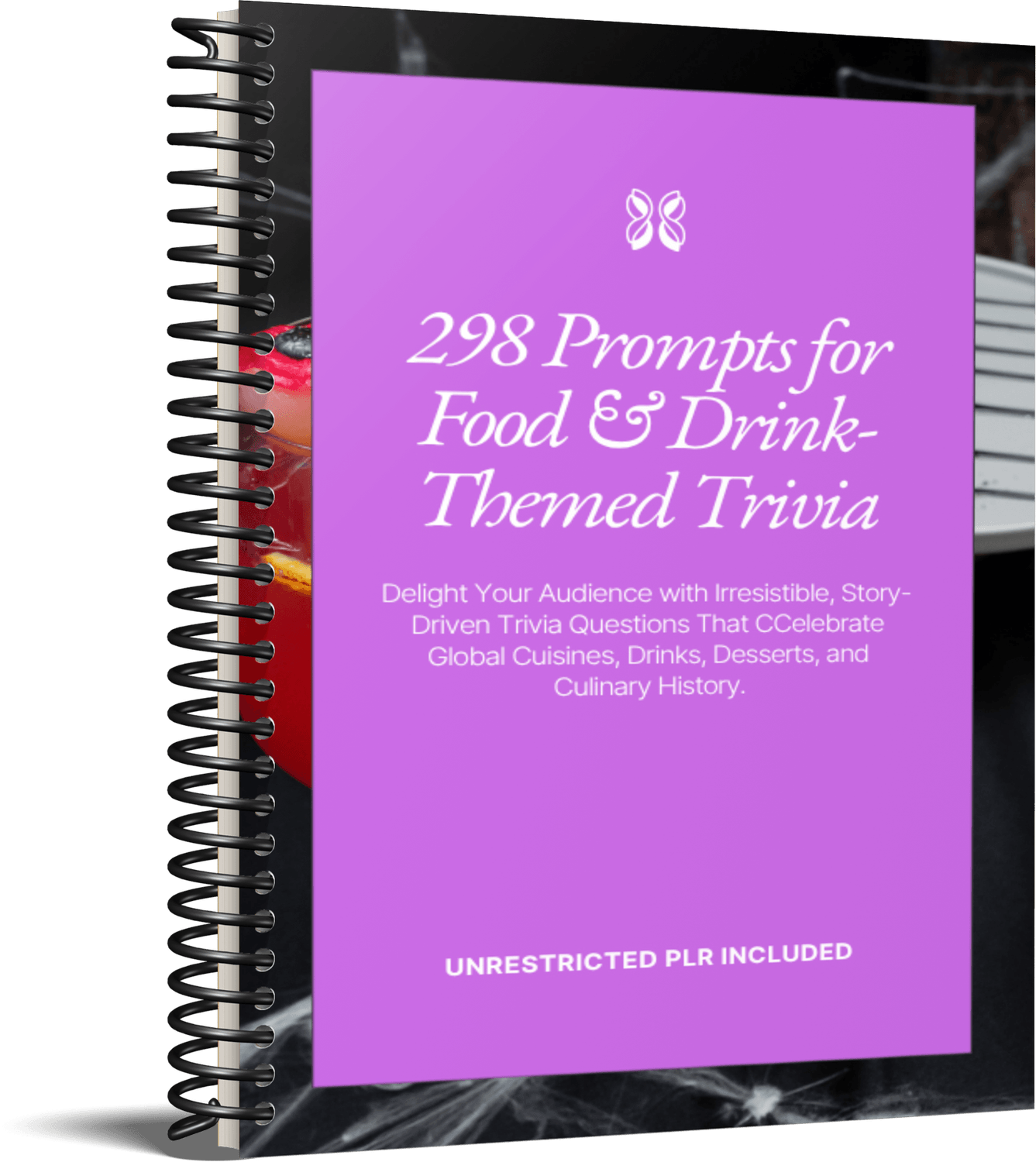 This collection of 298 Food & Drink-Themed Trivia Prompts invites you to travel through time, taste, and tradition — from the humble origins of bread and cheese to the vibrant street stalls of Bangkok and the elegant dining rooms of Paris.