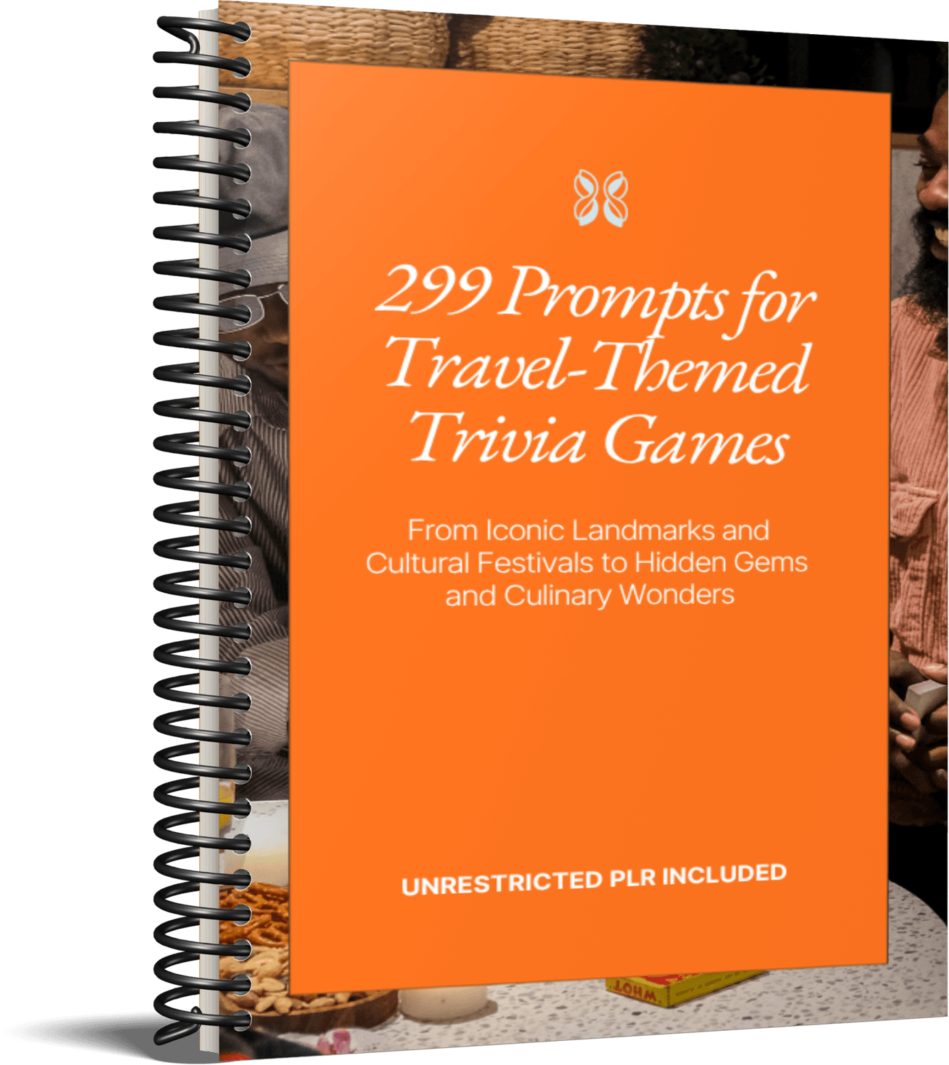 299 Prompts for Travel-Themed Trivia Games delivers ready-made, beautifully written travel questions that spark imagination, laughter, and learning — perfect for content creators, educators, quiz hosts, and digital product sellers.