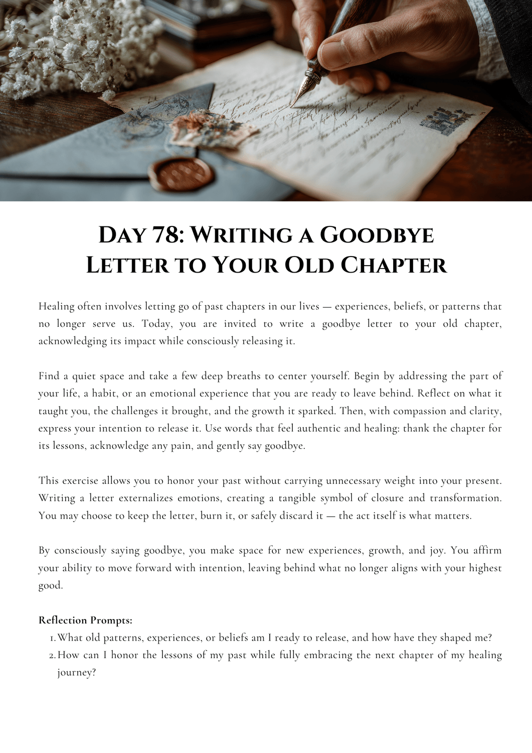 Whether you’re healing from heartbreak, navigating loss, or simply longing to feel grounded again, each day offers a moment of calm — helping you release what hurts and rebuild what matters most.