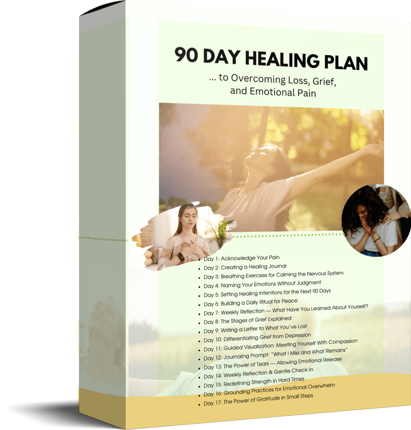 The 90 Day Healing Plan is designed as a step-by-step companion to guide you through this journey. Over the course of ninety days, you will explore practices, reflections, and exercises that help you navigate grief, release emotional weight, cultivate resilience, and gradually reclaim a sense of peace, purpose, and joy.