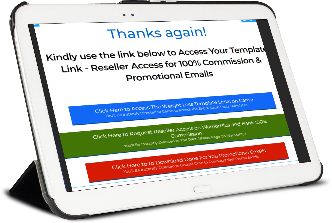 On the next page, you'll have the chance to secure full reseller access to sell as your own, access to the template link to edit/modify to your taste... and professionally written promotional emails to market the product for profits.